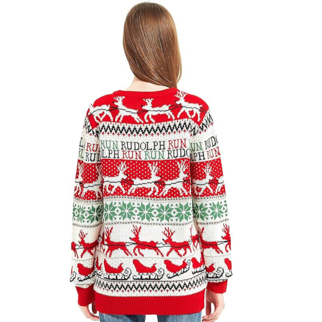 Dieser Damen Weihnachtspullover vereint lustige Weihnachtsmotive mit hochwertigem Material. Hergestellt aus Acryl und Viskose, ist der Pullover besonders kuschelig und warm – ideal für kalte Wintertage. Der Rundhalsausschnitt und das süße Rentier- und Schneemannmuster machen ihn zu einem perfekten Outfit für Weihnachten, Silvester oder einfach den Alltag. Ein tolles Geschenk für die Freundin oder Familienmitglieder!
