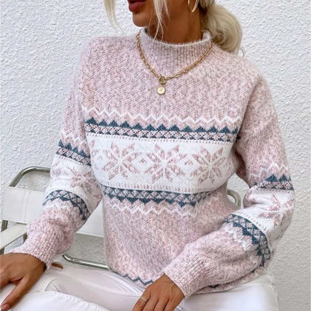 Für einen eleganten und dennoch festlichen Look sorgt dieser Damen Weihnachtspullover. Mit seinem kleinen Stehkragen und den weichen Rippstrickbündchen bietet dieser Pullover eine feminine und gleichzeitig gemütliche Passform. Das Schneeflocken-Design sorgt für die richtige Portion Winterfeeling und macht ihn zum idealen Begleiter für Weihnachtsfeiern, Silvester oder auch den Alltag. Wenn du nach einem stilvollen Weihnachtsgeschenk suchst, ist dieser Pullover genau das Richtige!