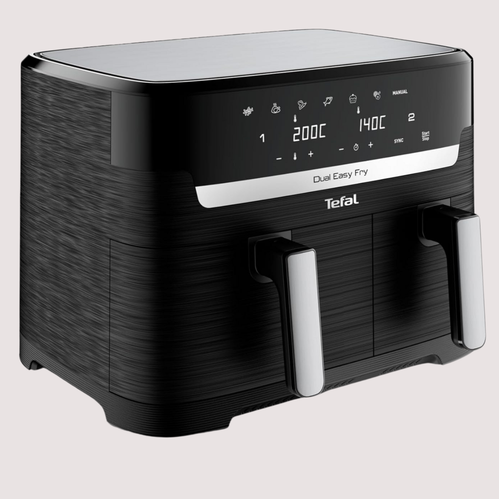 Die Tefal EY9018 Dual Easy Fry bietet eine innovative Lösung für schnelle Familienmahlzeiten, dank ihrer zwei unabhängigen Schubladen. Mit einer großen 5,2-Liter-Schublade und einer kleineren 3,1-Liter-Schublade können Nutzer unterschiedliche Gerichte parallel zubereiten – ideal für ein vollständiges Menü in einem Durchgang. Die voreingestellten Programme erleichtern das Kochen von Pommes, Hähnchen, Gemüse, und mehr, ohne zusätzliches Öl oder Fett. Dies spart nicht nur Zeit, sondern auch bis zu 70 % Energie im Vergleich zu herkömmlichen Öfen. Ein besonderes Highlight ist die Extra-Crisp-Technologie, die knusprige Ergebnisse liefert. Die Heißluftfritteuse ist zudem leicht zu reinigen, da die Schubladen und der Rost spülmaschinenfest sind. Wer Wert auf Effizienz, gesunde Ernährung und eine einfache Handhabung legt, findet in diesem Gerät eine erstklassige Ergänzung für die Küche.